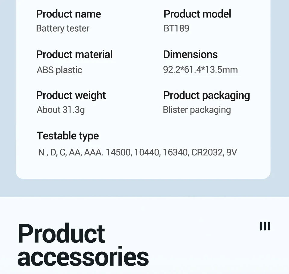 - 🔋 Universal Compatibility: Works with C, D, AA, AAA, N, 9V, and even button cells (CR2032, 1.5V, 3V).